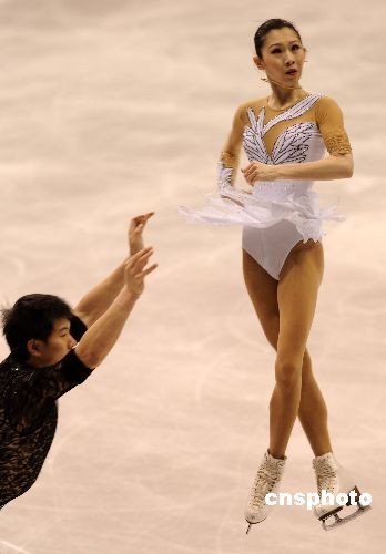 當(dāng)?shù)貢r間3月24日晚,2009年花樣滑冰世界錦標(biāo)賽在洛杉磯正式開幕。在當(dāng)天晚上舉行的雙人滑短節(jié)目比賽中,中國選手、都靈冬奧會亞軍張丹和張昊以67.42名列第三。衛(wèi)冕冠軍德國組合薩維琴科和索爾科維名列第一。25日晚將舉行雙人自由滑比賽,根據(jù)兩項總成績決出名次。圖為張丹和張昊在比賽中。中新社發(fā) 張煒 攝