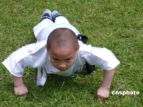 圖:大陸"大力神童"臺(tái)北表演一指禪俯臥撐