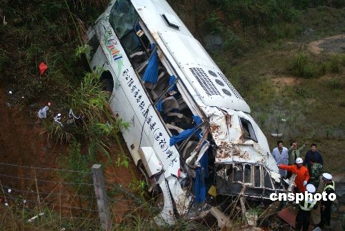 3月27日,一輛大型客車(車牌號(hào)為閩CY9537)從江西省萬年開往福建省泉州石獅方向,在南平長(春)深(圳)高速2898公里處(延平區(qū)大橫鎮(zhèn)路段),從右側(cè)方向路邊溝翻至山溝,車輛嚴(yán)重毀壞。據(jù)初步了解,該車輛核載45人,車上駕乘人員25人,死亡18人,其中當(dāng)場(chǎng)死亡17人,在送往醫(yī)院途中死亡1人,死者中男性12名、女性6名。受傷7人分別送往南平第一醫(yī)院(1人)、人民醫(yī)院(1人)、九二醫(yī)院(5人),醫(yī)務(wù)人員正全力組織搶救,生命征較穩(wěn)定,暫無生命危險(xiǎn)。
