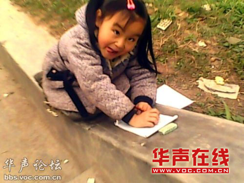 “盡管是初春,但若有若無的雨絲,也讓人忍不住要裹緊衣服。女孩一直在專心地做著作業(yè),并沒有因為梯子上面有人走下來而受到影響!卑l(fā)帖人稱自己在一個小區(qū)工地發(fā)現(xiàn)這名小女孩并和她攀談起來:“我問她為什么不回家,偏偏跑到有雨的外面做作業(yè)?她調皮地朝我做了一個鬼動作,‘我媽媽叫我在這里做作業(yè)!