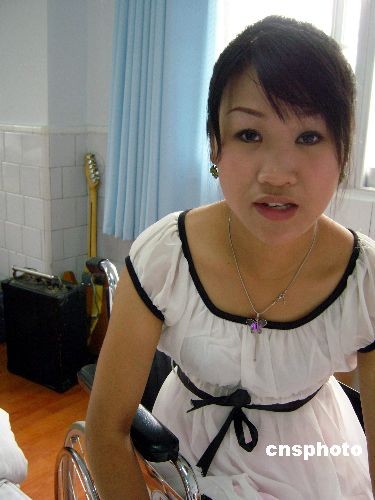 四川省人民醫(yī)院康復(fù)中心有很多因去年地震而遭遇截肢的康復(fù)病人,5月8日,來(lái)自安徽的雙腿截肢女孩李應(yīng)霞暢談她的夢(mèng)想,身后的墻角放著她特意叫父親從廢墟中挖出的吉他和音箱。李應(yīng)霞今年22歲,當(dāng)年為了母親的腰病和姐妹的學(xué)業(yè),14歲的她跟叔叔一起來(lái)到四川都江堰,在啤酒長(zhǎng)廊靠唱歌謀生并向家中寄錢,異鄉(xiāng)的漂泊一直延續(xù)到災(zāi)難發(fā)生。中新社發(fā) 翁陽(yáng) 攝