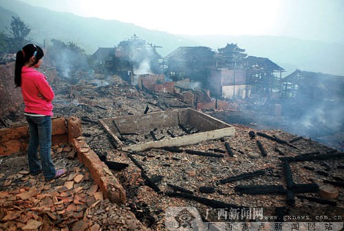 5月10日晚,廣西柳州三江侗族自治縣獨(dú)峒鄉(xiāng)知了村知了屯發(fā)生火災(zāi),68戶人家的房屋被燒毀,另有69戶房屋因救火被破拆。據(jù)當(dāng)?shù)孛裾块T(mén)初步統(tǒng)計(jì),直接經(jīng)濟(jì)損失達(dá)130多萬(wàn)元。