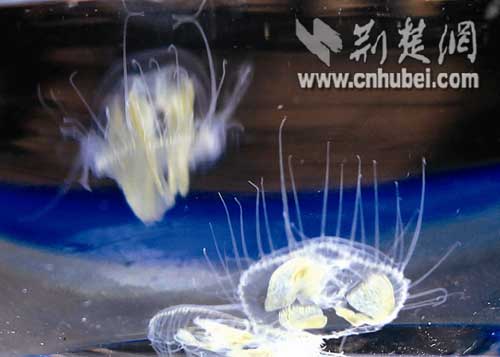 據(jù)介紹,當日下午,丹江口市新港村村民陳文新,在漢江中發(fā)現(xiàn)一種硬幣大小、通體晶瑩透亮的生物伸縮漂游,總數(shù)約有4000只。經(jīng)該市水產局副局長、水產工程師熊治邦現(xiàn)場鑒定,它們是世界極危生物——桃花水母。