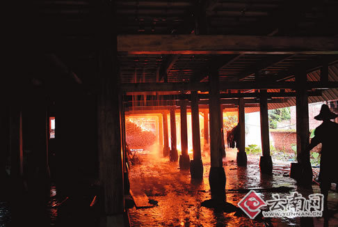 與此同時(shí),發(fā)現(xiàn)房屋起火的村民也跑到村寨辦公室,用高音喇叭通知村民趕來救火。等玉溫接到兒媳電話趕回來時(shí),大火已經(jīng)燒得通紅,現(xiàn)場(chǎng)趕來的數(shù)十名村民已經(jīng)開始用臉盆和水桶接水救火了。隨后趕來的公安民警、以及從遠(yuǎn)處的曼春滿、曼聽等村寨趕來的村民也紛紛加入到了救火隊(duì)伍中。
