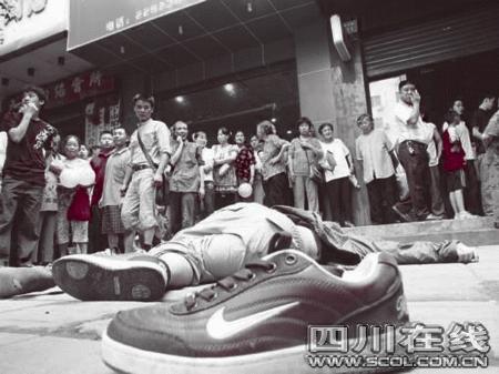 遂州中路是遂寧的繁華街道,現(xiàn)場很快聚集了很多圍觀市民。圍觀市民看見:躺在地上的死者很像一個高中生,年齡十八九歲,右手挽有一黑色雙肩背包!25日是高考成績公布的日子,這個人又像高中生,是不是他沒考好而跳樓自殺哦!薄鞍!榜上無名,腳下有路,再怎么說也不應(yīng)該走這條路呀!”圍觀市民議論紛紛,“高考生跳樓”的消息不脛而走。
