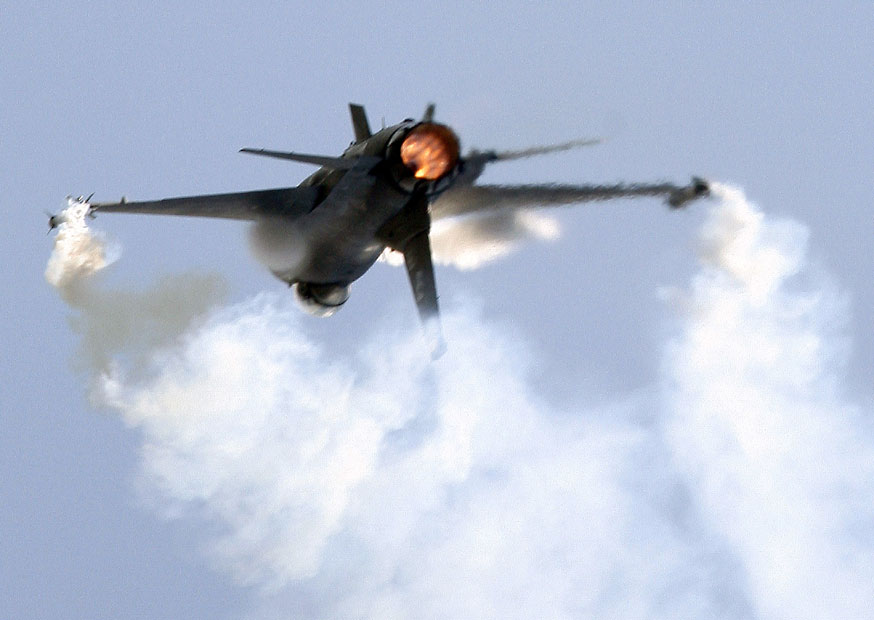 圖為美國F-16戰(zhàn)斗機進行飛行表演。