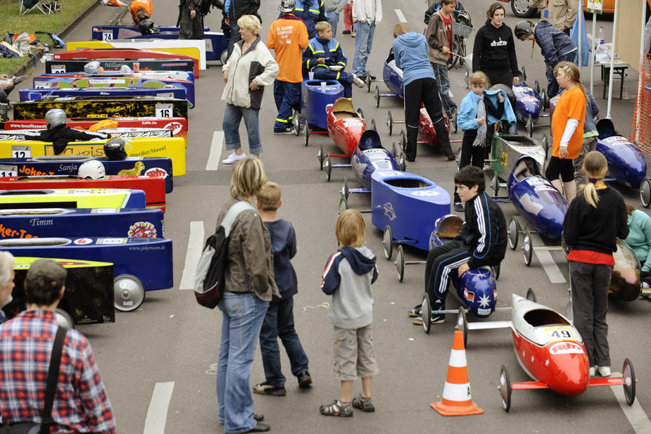 6月28日,德國柏林的德比郡舉行了第50屆“肥皂盒”競速賽車,該賽車沒有動力裝置,參賽者親手打造的“賽車”更使比賽妙趣橫生。