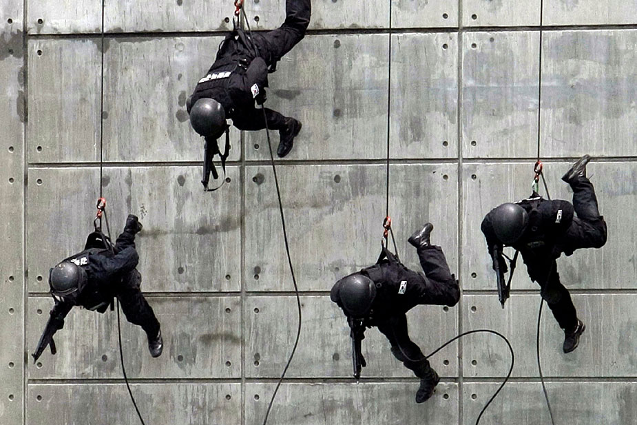 7月2日,韓國(guó)特警在韓國(guó)首都首爾市舉行了反恐演習(xí)。韓國(guó)特警先后表演了一系列高難度動(dòng)作,令人目不暇接。