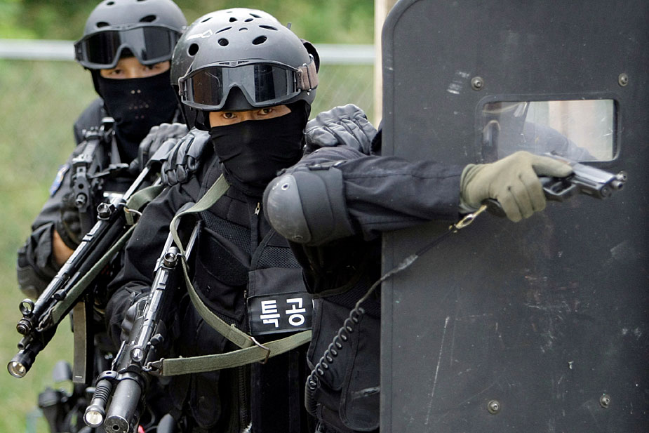 7月2日,韓國特警在韓國首都首爾市舉行了反恐演習。韓國特警先后表演了一系列高難度動作,令人目不暇接。