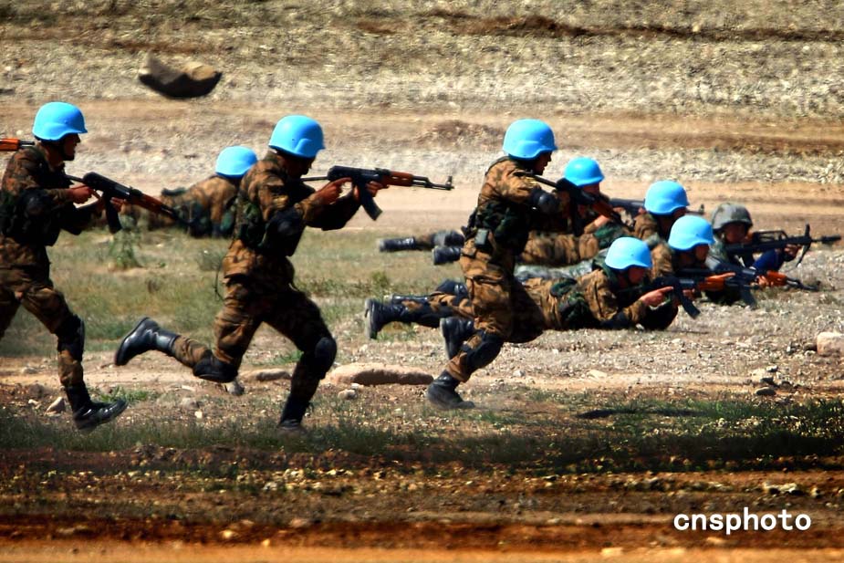 7月3日,中國(guó)和蒙古首次舉行維和聯(lián)合軍事訓(xùn)練,以執(zhí)行聯(lián)合國(guó)框架下維和任務(wù)為背景,在北京地區(qū)某訓(xùn)練場(chǎng)開(kāi)展多種綜合演練。中新社發(fā) 宋吉河 攝