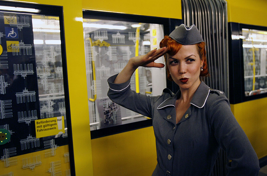 7月2日,模特在德國首都柏林的一輛地鐵上,演繹名為“地鐵上的貓步”時(shí)裝秀。