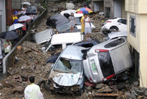 7月16日,因暴雨引發(fā)了泥石流,韓國(guó)釜山街頭一些車(chē)輛被沙石掩埋,目前人員傷亡情況尚不清楚。