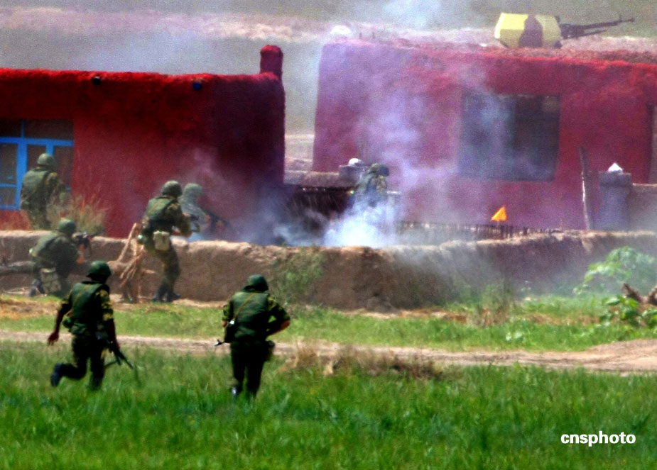 中國、俄羅斯兩軍總參謀長,7月23日上午到沈陽軍區(qū)洮南合同戰(zhàn)術(shù)訓練基地,觀看“和平使命2009”聯(lián)合反恐軍事演習。