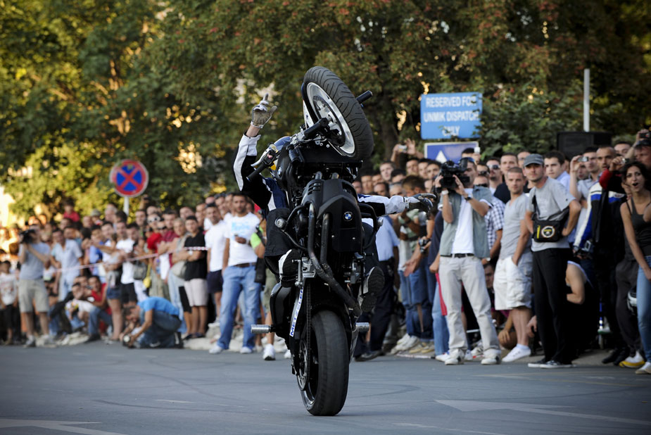 當(dāng)?shù)貢r(shí)間26日,德國(guó)著名的特技表演大師Chris Pfeiffer在科索沃地區(qū)的Pristina進(jìn)行一場(chǎng)街頭表演。
