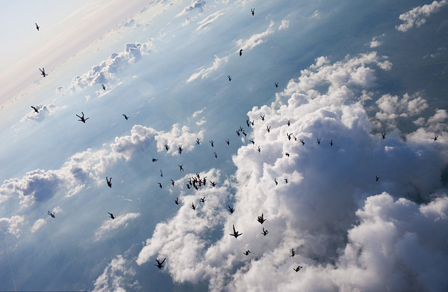 據(jù)英國媒體8月2日報道,美國上空108名傘降者從1.8萬英尺(約5.48公里)高空以180英里每小時時速跳下,并在空中組成各種圖形,欲打破世界紀(jì)錄。