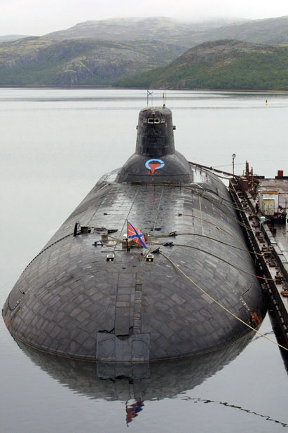 這種水下武器平臺(tái)的技術(shù)數(shù)據(jù)是令人震驚的。它擁有鈦金屬制造的外殼,全長(zhǎng)173米,寬24.6米,高42.7米,相當(dāng)于一座10層大樓,水面航行時(shí)吃水深13米,水下排水量可以達(dá)到2.65萬(wàn)噸,水面航速達(dá)到每小時(shí)30公里,潛航速度可以達(dá)到每小時(shí)50公里,最大下潛深度500米,持續(xù)潛航時(shí)間達(dá)到120天。在冷戰(zhàn)期間,六艘“臺(tái)風(fēng)”級(jí)潛艇就位于距離挪威邊境50公里的Zapadnaya Litsa海軍基地。