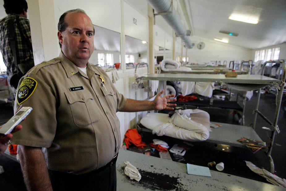 圖為哈格雷夫中將描述損壞的奇諾監(jiān)獄宿舍。8月8日晚至9日凌晨,美國(guó)加州南部奇諾市發(fā)生大規(guī)模監(jiān)獄騷亂,截至目前,在250多名受傷的在押犯人中,仍有16名犯人在醫(yī)院接受治療。