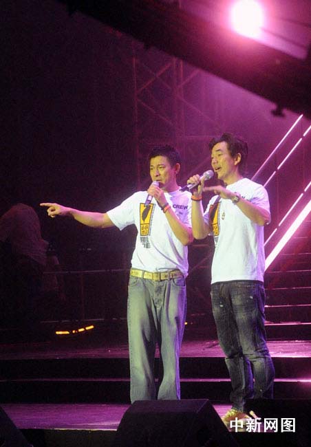 圖為劉德華與任賢齊在現(xiàn)場演出。