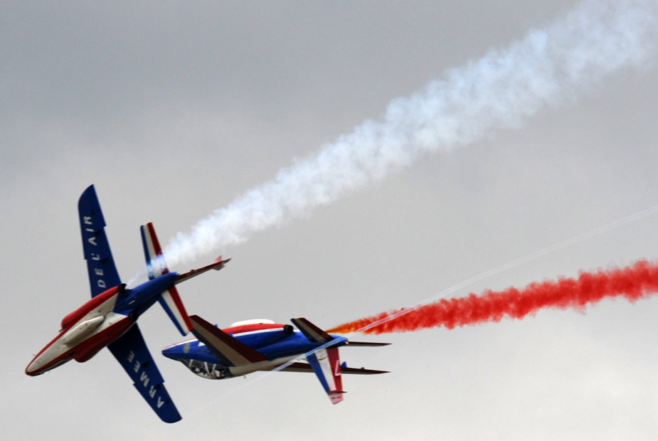 8月21日,在俄羅斯茹科夫斯基市舉行的第九屆國(guó)際航空航天展覽會(huì)上,法國(guó)著名的“法蘭西巡邏兵”飛行表演隊(duì)進(jìn)行了精彩的飛行表演。