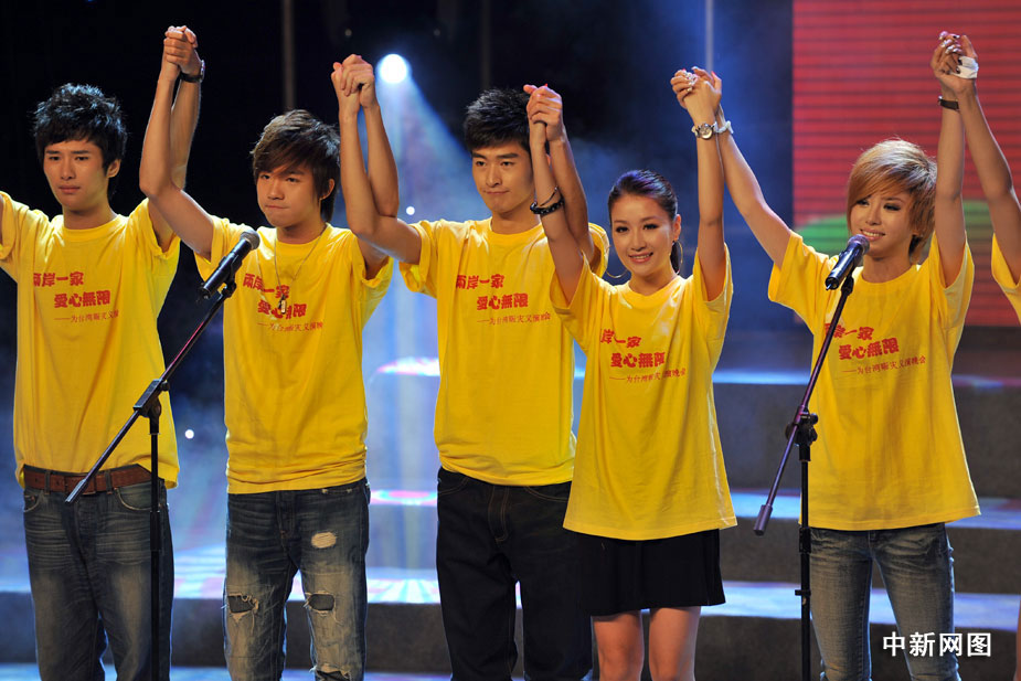 8月22日晚,北京舉行“兩岸一家 愛(ài)心無(wú)限”為臺(tái)灣同胞賑災(zāi)義演晚會(huì),大陸和臺(tái)灣演藝界明星登臺(tái)為臺(tái)灣災(zāi)區(qū)同胞共獻(xiàn)愛(ài)心,晚會(huì)臨近結(jié)束時(shí)共收到各界捐款3000多萬(wàn)元。中新網(wǎng)記者 金碩 攝