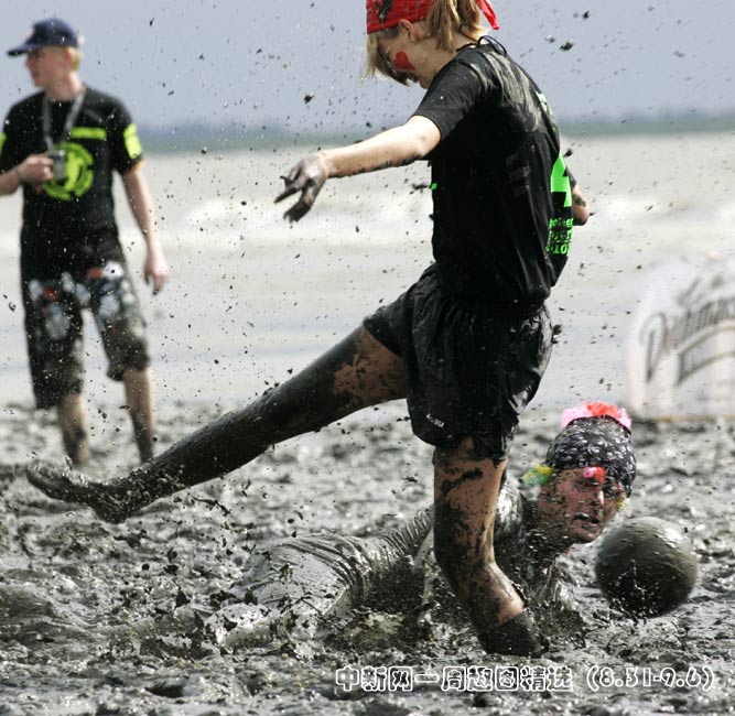 德國北部海邊小鎮(zhèn)Brunsbuettel的泥灘上進(jìn)行一場別開生面的泥地足球賽。圖片來源:中國新聞網(wǎng)