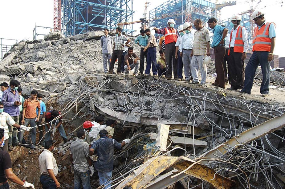 印度中部一座在建電廠的巨型煙囪23日下午發(fā)生倒塌,目前估計已有至少100人罹難。圖片來源:中國新聞網(wǎng)