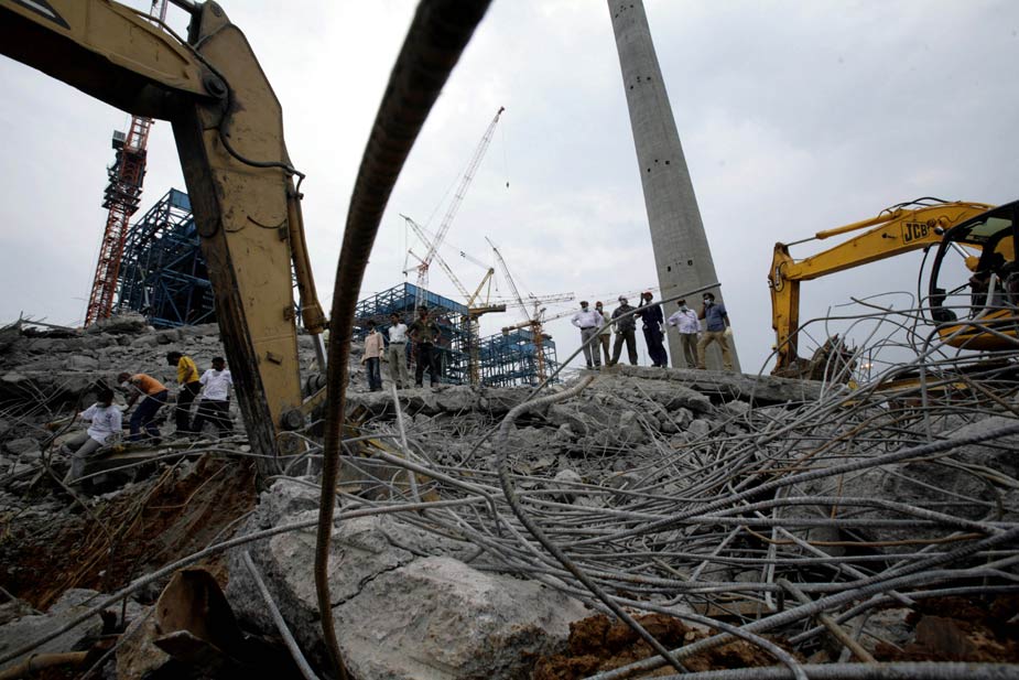 印度一座電廠在建煙囪發(fā)生倒塌