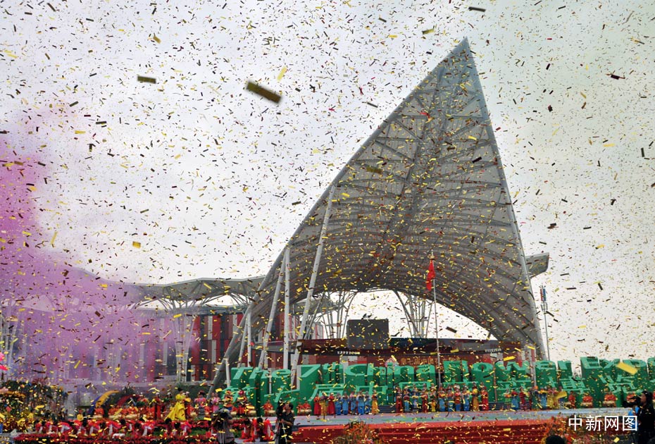 花博會開幕式“花雨”從天而降