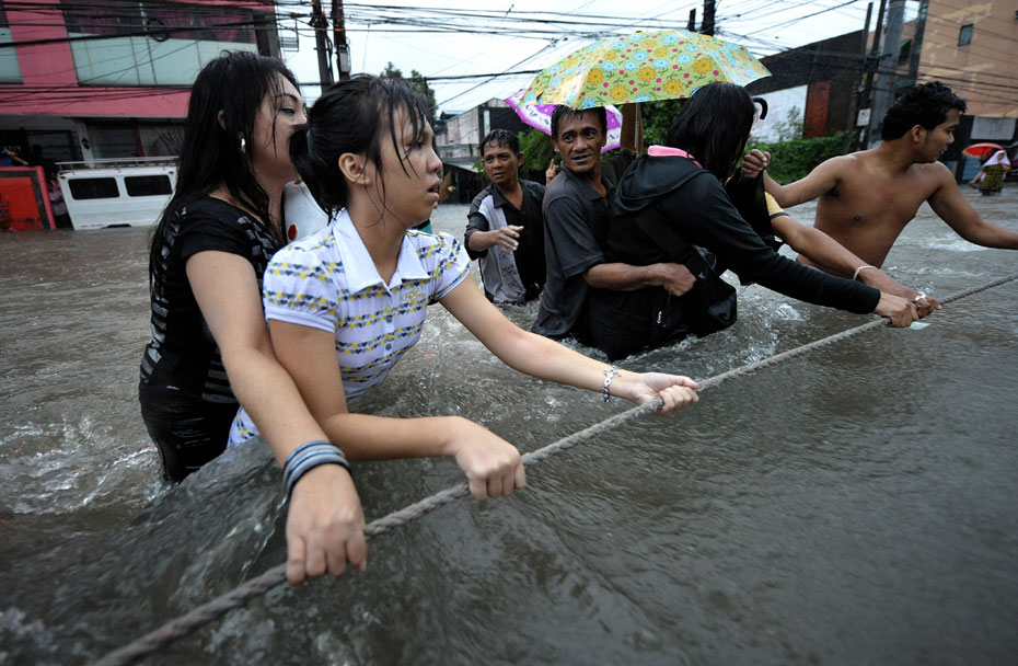 熱帶風(fēng)暴“凱薩娜”26日吹襲菲律賓北部呂宋島,首都大馬尼拉地區(qū)出現(xiàn)逾42年來最嚴(yán)重水災(zāi),幾乎變成澤國。圖片來源:中國新聞網(wǎng)