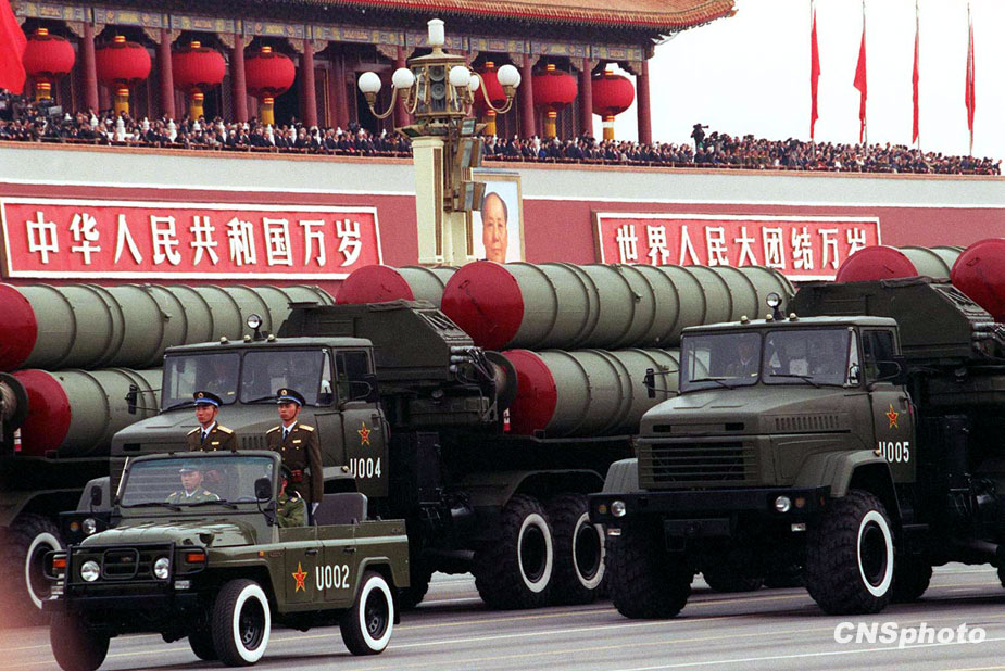 圖為空軍的中遠(yuǎn)程地對(duì)空導(dǎo)彈出現(xiàn)在1999年國(guó)慶閱兵行列中。中新社發(fā) 滿會(huì)喬 攝