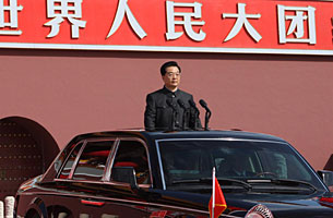 胡錦濤乘紅旗轎車檢閱