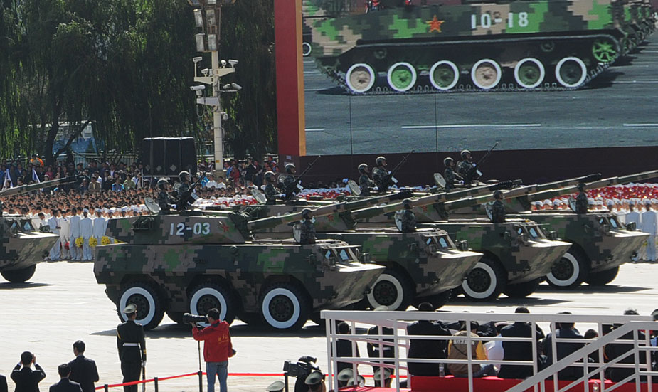 2009年10月1日,中華人民共和國成立60周年慶祝大會在北京天安門廣場舉行。圖為輪式自行突擊炮方隊。中新網(wǎng)記者 攝
