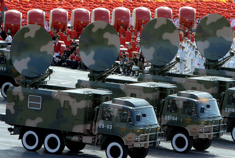2009年10月1日,中華人民共和國成立60周年慶祝大會在北京舉行。圖為通信兵方隊(duì)接受檢閱。中新社發(fā) 任晨鳴 攝
