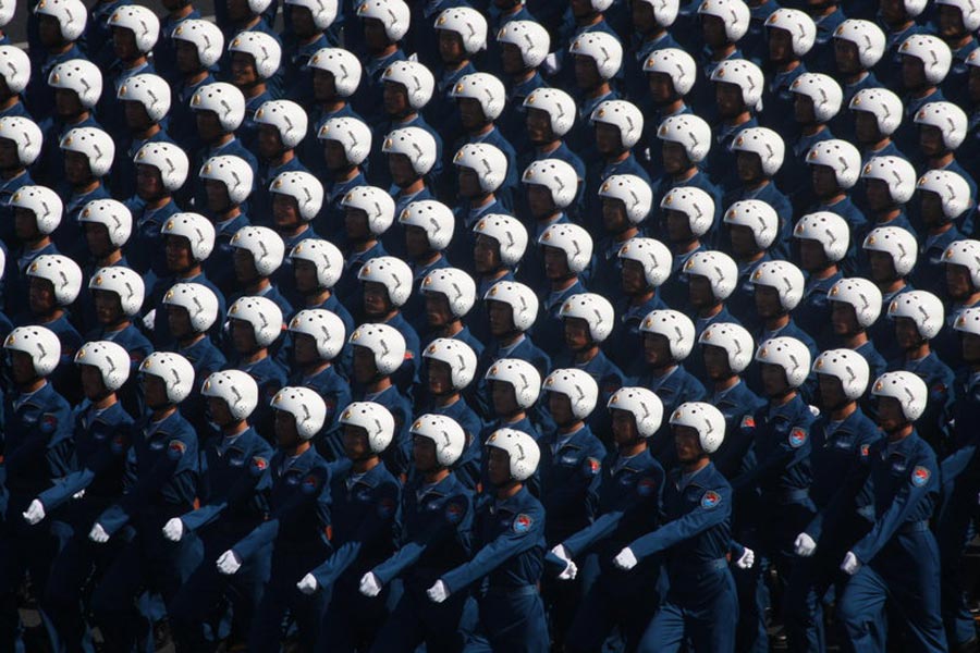 2009年10月1日,北京,首都各界慶祝中華人民共和國(guó)成立60周年大會(huì)在北京舉行。大會(huì)結(jié)束后舉行了盛大的閱兵式。圖為接受檢閱的徒步方隊(duì)。 史家民/CFP
