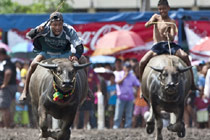 泰國舉行別開生面的騎水牛大賽