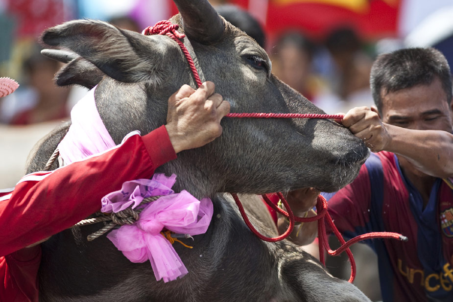 10月3日,泰國(guó)一年一度的騎水牛大賽在春武里舉行。