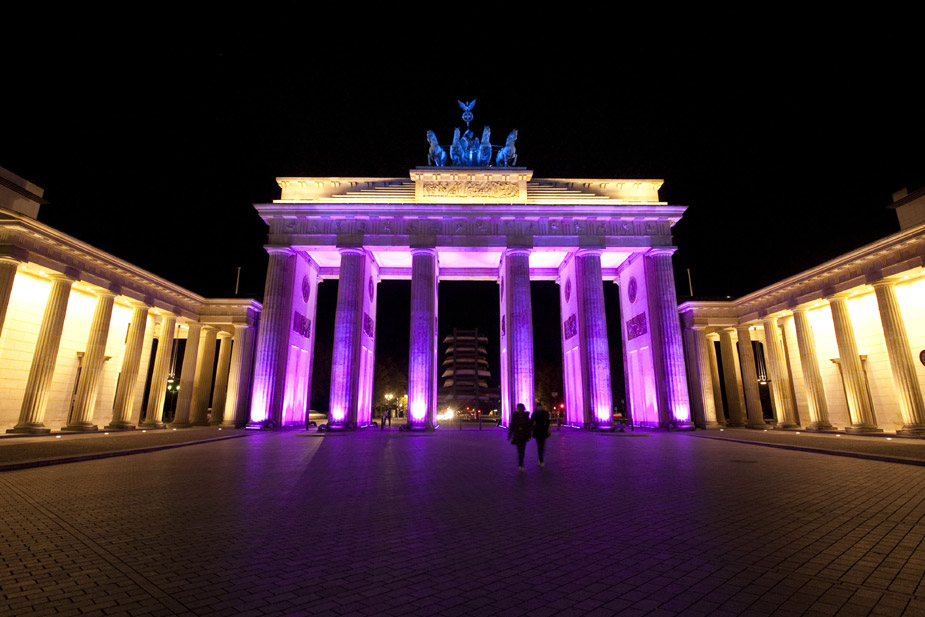 13日晚在德國首都柏林,勃蘭登堡門在“燈節(jié)”的提前預(yù)演中被五彩燈飾照亮。圖片來源:中國新聞網(wǎng)