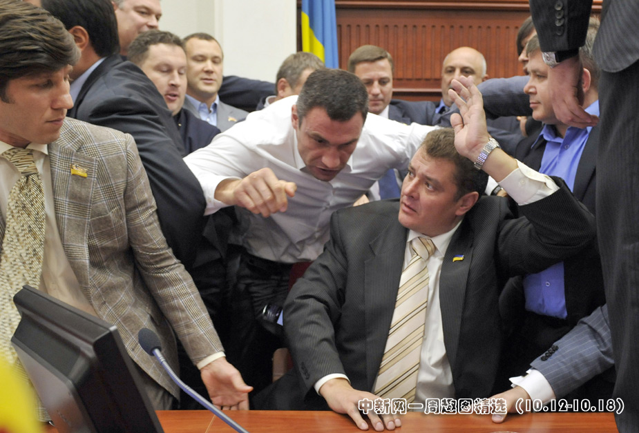 近日,在基輔地方議會上發(fā)生了令人不快的一幕,F(xiàn)年38歲的維塔利·克里琴科與人發(fā)生激烈爭執(zhí),還起了肢體沖突。圖片來源:中國新聞網(wǎng)