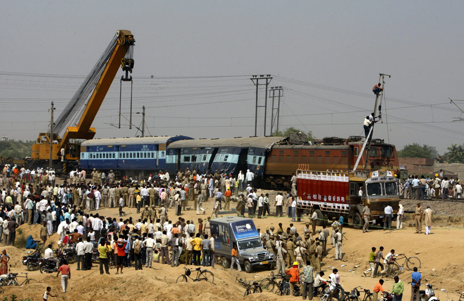 印度北方邦21日凌晨發(fā)生兩列火車相撞事故, 一輛來自西南部果阿的快運(yùn)列車在馬圖拉附近與一列來自西部拉賈斯坦邦梅瓦爾的快運(yùn)列車相撞,造成15人死亡。圖為事故現(xiàn)場。來源:中國新聞網(wǎng)
