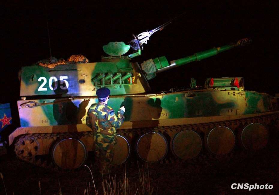 當(dāng)晚國(guó)防大學(xué)防務(wù)學(xué)院、空軍指揮學(xué)院的外軍學(xué)員,以及英國(guó)、以色列、土耳其、巴基斯坦等國(guó)軍事觀察員親臨現(xiàn)場(chǎng)觀摩了后勤保障戰(zhàn)斗準(zhǔn)備、自行榴彈炮占領(lǐng)陣地、裝甲車輛“摸黑”開進(jìn)等戰(zhàn)斗要素。中新社發(fā) 宋吉河 攝