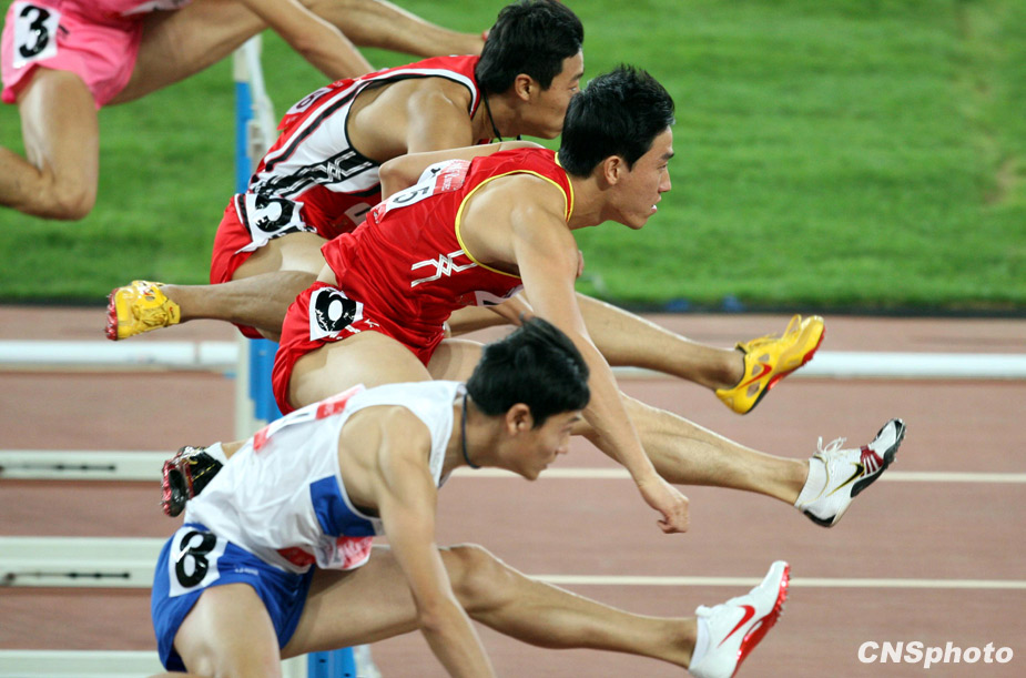 10月24日晚,全運會110米欄預賽在濟南奧體中心舉行,“飛人”劉翔以13秒75成績輕松晉級決賽。來源:中國新聞網(wǎng)