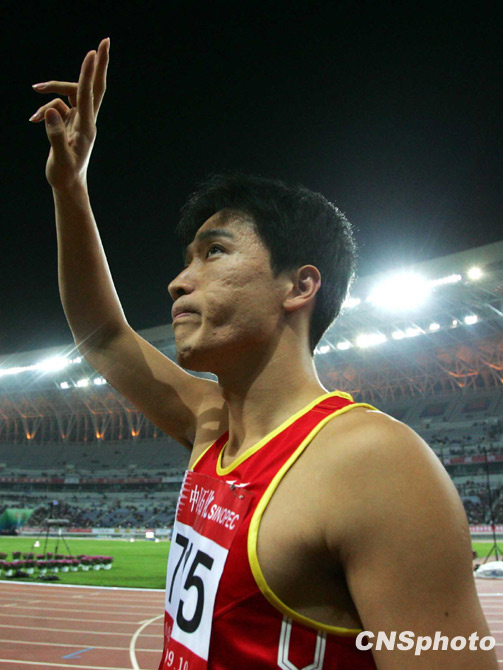 10月24日晚,全運(yùn)會(huì)110米欄預(yù)賽在濟(jì)南奧體中心舉行,“飛人”劉翔以13秒75成績(jī)輕松晉級(jí)決賽。來源:中國(guó)新聞網(wǎng)