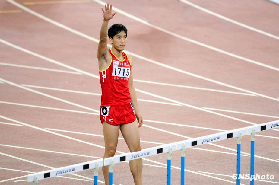 10月24日晚,全運(yùn)會(huì)110米欄預(yù)賽在濟(jì)南奧體中心舉行,“飛人”劉翔以13秒75成績(jī)輕松晉級(jí)決賽。來(lái)源:中國(guó)新聞網(wǎng)