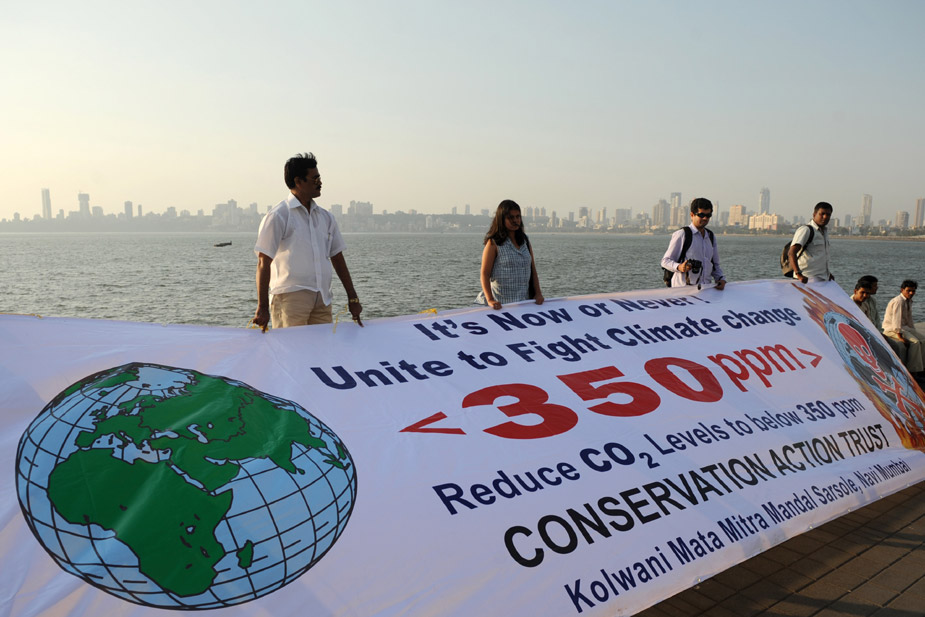 2009年10月24日,當日是350全球應對氣候變化行動日,世界各地的民眾紛紛用自己的方式來表示對全球氣候變化的關注和擔憂。圖為印度民眾組織的活動。