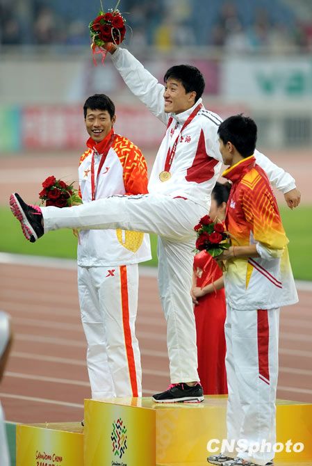 10月25日,在全運會田徑男子110米欄決賽中,上海代表團(tuán)選手、“中國飛人”劉翔以13秒34的成績勇奪冠軍,同時也成就了其全運會該項目三連冠的偉業(yè)。