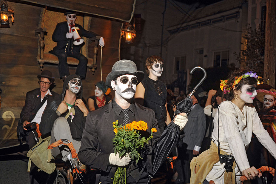 11月2日,美國(guó)舊金山居民扮成鬼怪模樣慶祝“亡靈節(jié)”!巴鲮`節(jié)”是拉美地區(qū)的傳統(tǒng)節(jié)日,類(lèi)似于中國(guó)的清明節(jié)。來(lái)源:中國(guó)新聞網(wǎng)