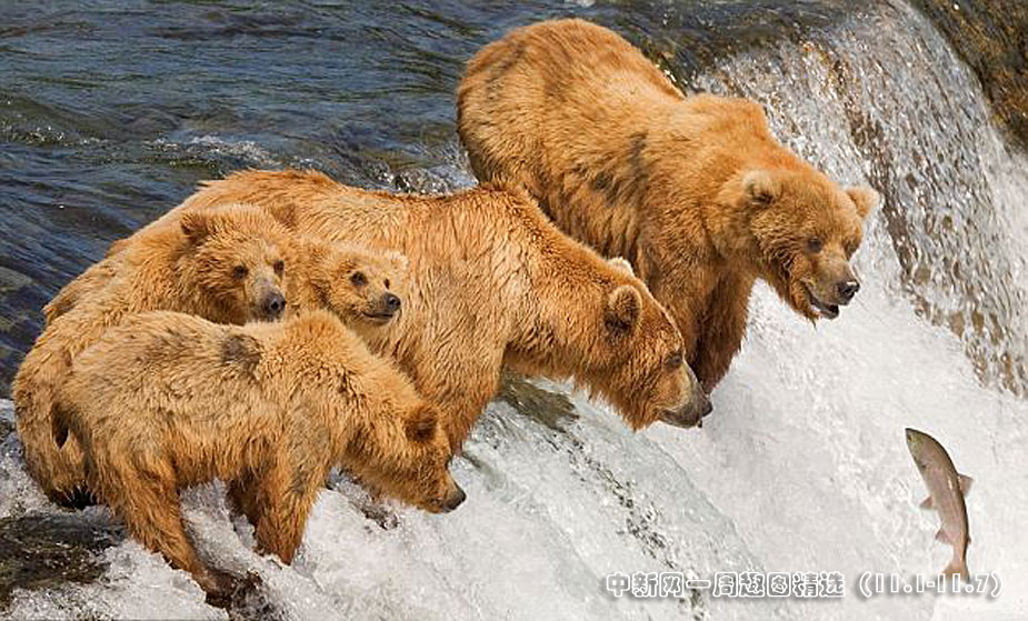 近日,美國阿拉斯加的卡特邁國家公園一只灰熊媽媽教授她的三個熊崽捕魚。圖片來源:中國國家地理網(wǎng)>>點擊觀看詳細(xì)內(nèi)容