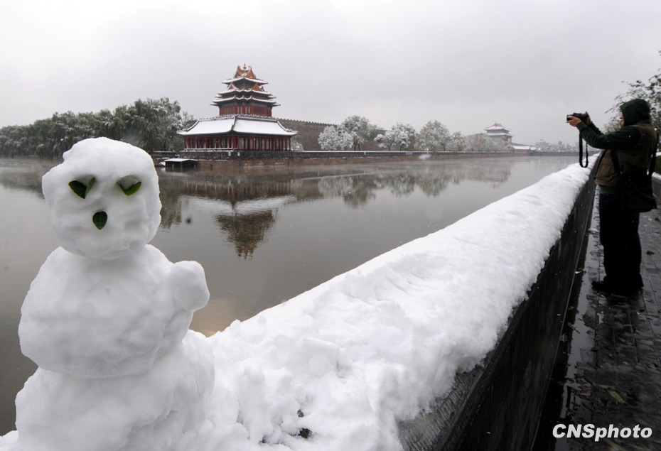 周日(1日),深秋的北京大雪紛飛銀裝素裹,很多市民來到室外玩雪,欣賞雪景。北京今年的初雪時間提前了整整一個月。來源:中國新聞網