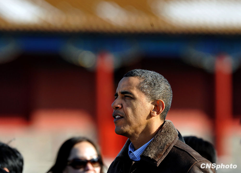 11月17日,正在中國進(jìn)行國事訪問的美國總統(tǒng)奧巴馬一行參觀北京故宮。圖片來源:中國新聞網(wǎng)