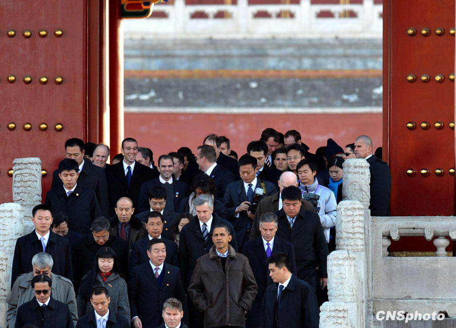 11月17日,正在中國進(jìn)行國事訪問的美國總統(tǒng)奧巴馬一行參觀北京故宮。圖片來源:中國新聞網(wǎng)
